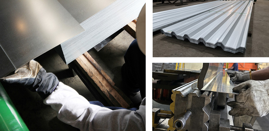 Telhas com até 12 metros de comprimento, com espessura de 0,43mm e 0,50mm.